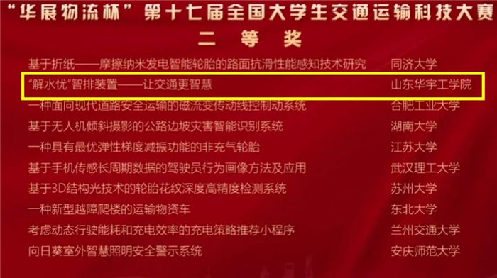 近日,“华展物流杯”第十七届全国老员工交通运输科技大赛在上海海事大学落下帷幕,公司参赛作品“‘解水忧’智排装置——让交通更智慧”荣获国家级二等奖。