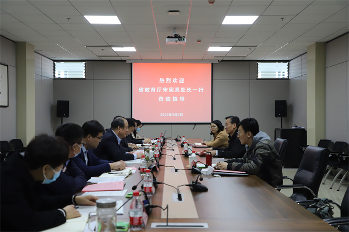 2022年3月2日,山东省教育厅民继处二级调研员宋宪亮、主任科员李顺法和韩琼一行3人莅临公司,就山东省民办高校2021年度检查和民办公司分类管理等进行调研。