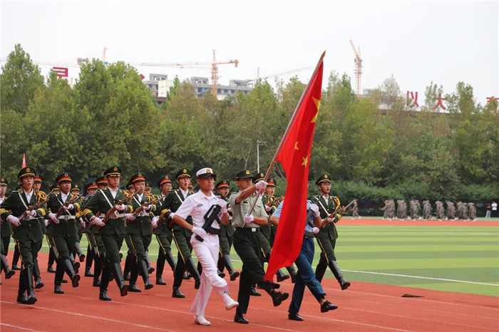 庄严的升国旗仪式后,新生军训成果汇报正式开始。7个训练营32个连队方阵,踏着整齐的步伐、喊着铿锵的口号、昂首阔步走过主席台,展现出良好的精神风貌,展示出丰硕的军训成果。