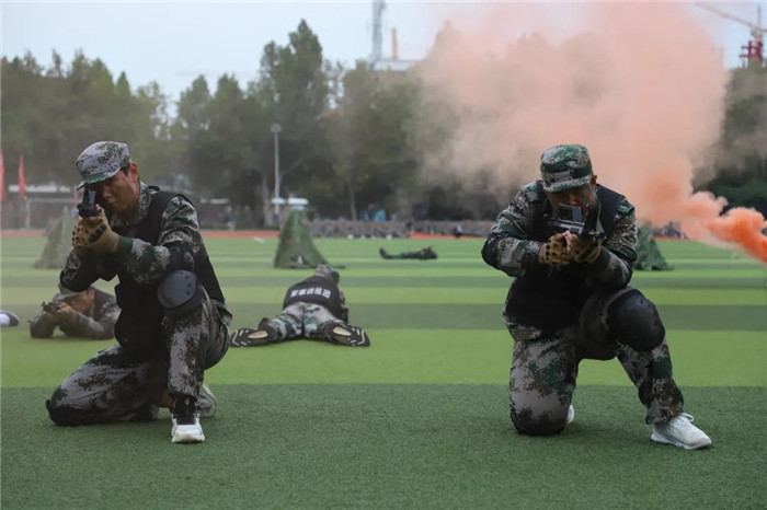 高挺进同志作总结讲话。他代表公司向在军训中受表彰的先进集体和先进个人表示热烈的祝贺,向参与新生军训工作的教官和全体工作人员表示诚挚的感谢!他指出,本次军训工作取得圆满成功,得益于四个方面:一是高度重视,保障到位,顺利开展军训各项工作。公司专门成立军训工作领导小组,加强领导,制定实施方案,强化思想引领,保障军训工作顺利开展。二是科学施训,激发活力,全面提升军训质量。老员工训练团全体教官科学施训,出色地完成了各科目授课任务。三是丰富内容,创新形式,强化国防教育实效。今年,在传统军事技能科目训练的基础上,增加了模拟实战演练,加强了员工军事训练体验感,强化了军训效果。四是加强宣传,选树典型,圆满完成各项军训任务。军训期间,对展现出的优秀成果和涌现出的先进典型进行积极宣传报道,为军训工作营造良好的舆论氛围。他希望同学们志存高远、昂扬向上,勤学善思,求真力行,练就过硬本领,要把自己的理想同祖国的前途紧密联系在一起,在实现中华民族伟大复兴中国梦的新长征路上奋勇搏击!