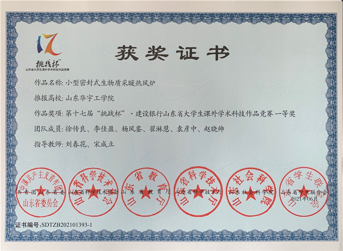 主赛道中,“小型密封式生物质采暖热风炉”项目获省级一等奖、“可穿戴骨传导手环”“电控离合器及其自动变档系统”2个项目获省级二等奖。