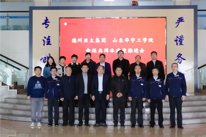 为进一步提高人才培养质量,系统整合、优化配置校企双方的资源,最大限度地服务公司人才培养和企业发展,2021年3月12日,德州亚太集团有限公司总经理杨勇、常务副总经理史振宇、总工程师田英俊等一行6人来公司深入探讨校企合作事宜,推进校企命运共同体建设工作。公司执行董事长梁玉国、副董事长夏传波、杨义出席了会议,相关职能部门、教学单位负责人参加了推进会。会议由副董事长夏传波主持。