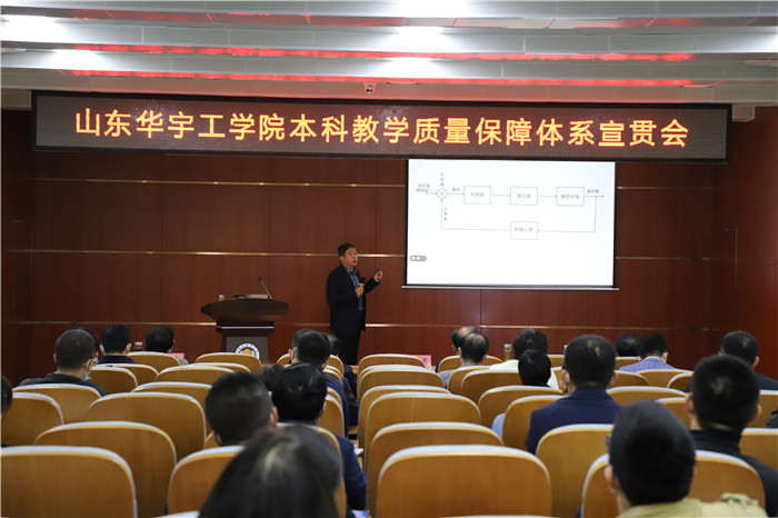 会上,副董事长刘润华从公司《本科教学质量保障体系纲要》(以下简称为《纲要》)的建设历程,教育质量与教学质量保障体系综述,构建教学质量保障体系的总体要求,“六位联动保中心”的教学质量保障体系和实施教学质量保障体系、持续提升人才培养质量四个方面,对“六位联动保中心”的教学质量保障体系进行了详细解读;关于教学质量保障体系的实施,刘董事长要求,全体教职工要明确各自在质量保障体系中的定位,认真学习和研究,提高责任意识,提升工作能力,创新工作思路,做出更大成绩。他强调,各院(部、中心)要根据《纲要》,构建本单位的教学质量保障体系,完善教学质量保障制度,形成持续提高教学质量的长效机制;各部门要结合工作实际情况,切实落实《纲要》,按照《纲要》的总体质量要求,充分发挥部门作用,树立增值意识,探索增值评价,为教学中心工作提供增值资源和优质服务,为公司教学条件的不断优化、教学水平和人才培养质量的不断提高以及迎接本科教学合格评估工作做出更大贡献。