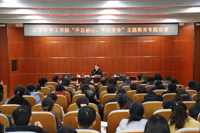 根据公司“不忘初心、牢记使命”主题教育工作安排,11月28日,公司党委书记徐传光在学术报告厅讲“不忘初心、牢记使命”主题教育专题党课,公司科级以上干部、各党支部委员、思政部全体教师聆听了专题党课,党课由公司党委副书记、副董事长高挺进主持。