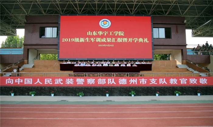9月9日下午,公司2019级新生军训成果汇报暨开学典礼在公司体育场隆重举行。武警德州支队副参谋长李曰涛,公司执行董事长梁玉国,副董事长夏传波、刘润华,党委副书记、副董事长高挺进,副董事长杜光荣,董事长助理魏东坡、贺红岩、侯建昌,各教学单位、各职能处室负责人及部分教职工参加了典礼。高挺进同志主持典礼仪式。