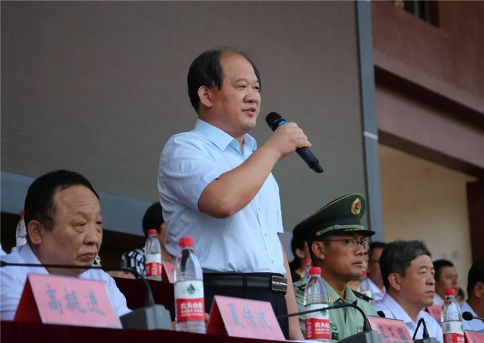 集团执行董事长梁玉国致辞。他首先代表全体师生员工向武警德州支队全体参训教官致以崇高的敬意!对2019级新同学表示最热烈的欢迎!