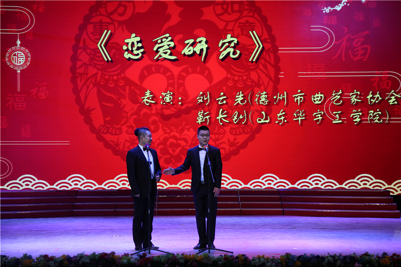 幽默诙谐的相声《恋爱研究》和小品《传销》笑料不断,引得观众掌声与笑声此起彼伏,展现了公司员工多才多艺的一面;师生深情演唱的歌曲《点亮未来》《中国》《三百六十五个祝福》《祝您平安》,唱出了师生对伟大祖国深情祝愿,对公司师生的美好祝福;音诗画《2018,我为你点赞》师生同台,以独特的形式讴歌了伟大祖国40年改革开放的伟大成就和2018年振奋人心的成绩,回顾了公司2018年的发展及取得的成绩,点赞2018,相约 2019,凝聚了全体师生的共识和力量;经典戏曲联唱和精彩武术表演,传承中国传统文化,彰显华宇学子文化内涵;柔美的瑜伽、灵动的健美操、动感的拉丁、出神的中国功夫彰显了员工社团的活力与风采,大型舞蹈诗《我的祖国》《百花争艳》充分表现了员工社团的艺术功底和美好情怀,一次又一次将晚会推向高潮。联欢会上,公司领导、老师、员工代表通过VCR视频和现场采访的形式,为全校师生送上了节日的祝福。一曲歌伴舞《我们的新时代》为整场联欢会划上完美的句号。
