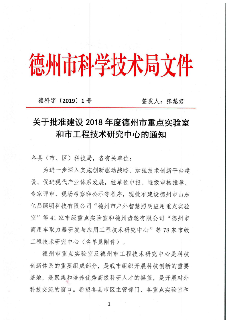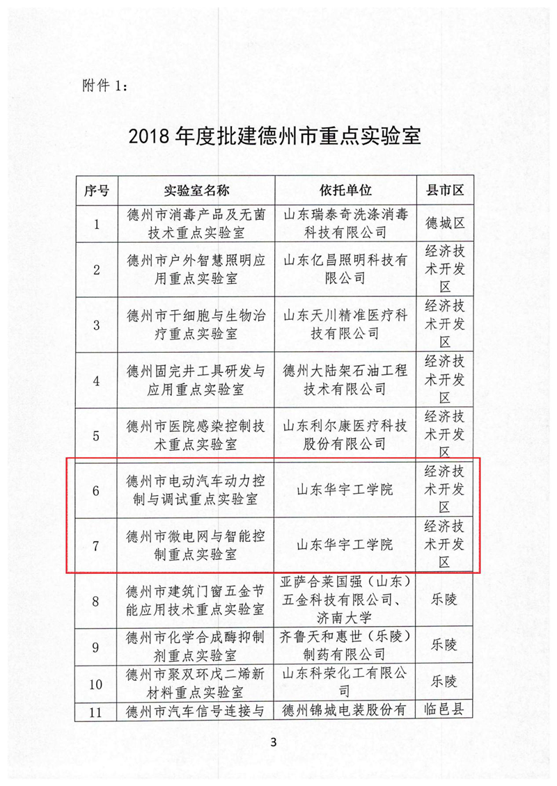 近日,德州市科学技术局下发了《关于批准建设2018年度德州市重点实验室和市工程技术研究中心的通知》(德科字[2019] 1号),公司汽车工程公司申报的“德州市电动汽车动力控制与调试重点实验室”与电气工程公司申报的“德州市微电网与智能控制重点实验室”成功获批德州市重点实验室建设。