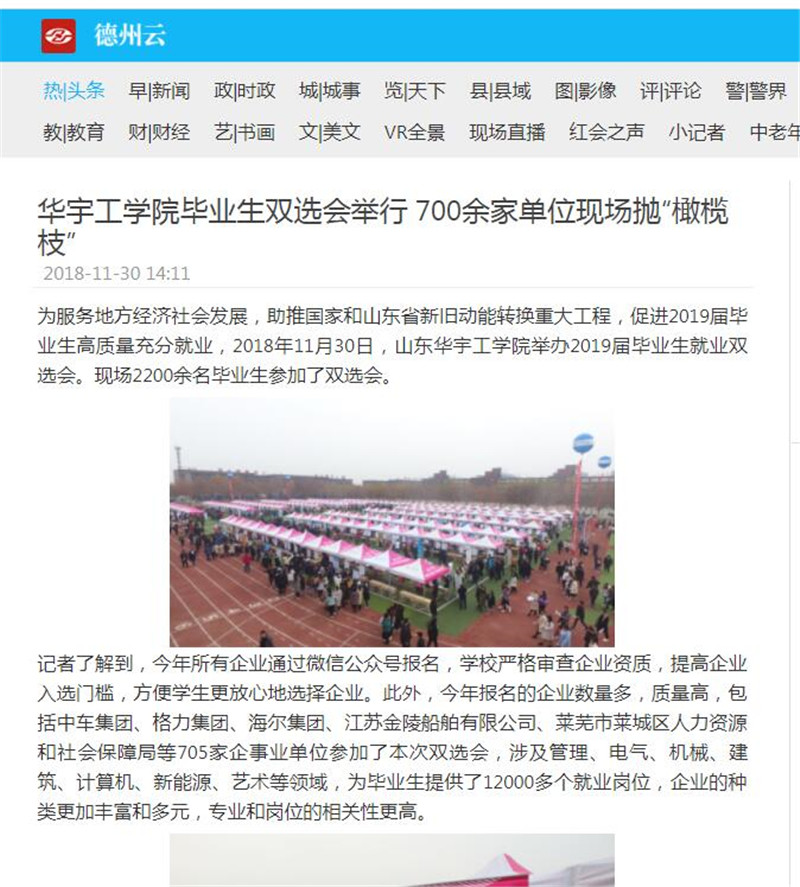 本次双选会受到了各级领导的高度重视。德州市教育局副局长王学东、德州市人力资源和社会保障局就业促进科科长马全新莅临双选会,执行董事长梁玉国等校领导陪同指导。