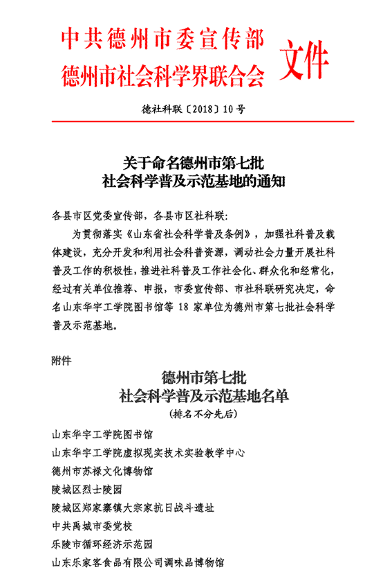 日前,市委宣传部、市社科联下发了《关于命名德州市第七批社会科学普及示范基地的通知》(德社科联〔2018〕10号),公司图书馆、设计与艺术公司“虚拟现实技术实验教学中心”获批为德州市第七批社会科学普及示范基地。据悉,德州市第七批社会科学普及示范基地共命名18家单位。