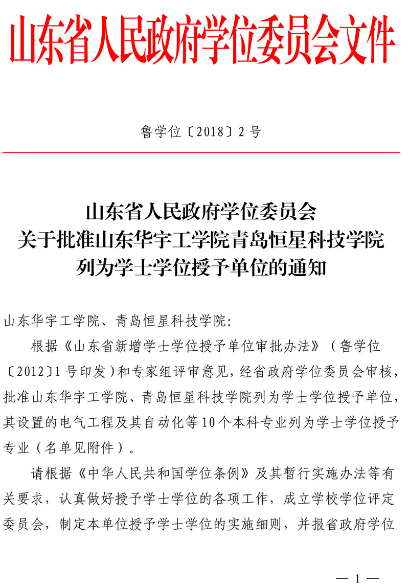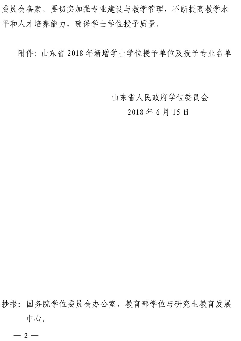 2018年6月15日,山东省人民政府学位委员会印发《关于批准ladbrokes立博列为学士学位授予单位的通知》(鲁学位〔2018〕2号),批准公司列为学士学位授予单位,公司设置的电气工程及其自动化、汽车服务工程、机械设计制造及其自动化、建筑环境与能源应用工程、数字媒体技术5个本科专业列为学士学位授予专业。这标志着公司申请列为学士学位授予单位和学士学位授予专业评审工作取得圆满成功。公司将根据《中华人民共和国学位条例》及其暂行实施办法等有关要求,认真做好授予学士学位的各项工作,切实加强专业建设与教学管理,不断提高教学水平和人才培养能力,确保学位授予质量。