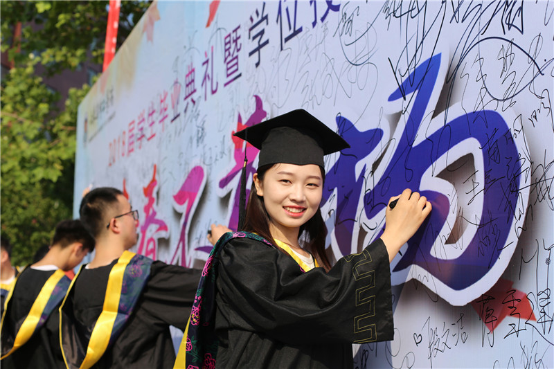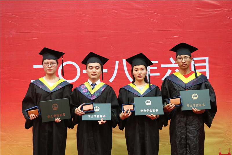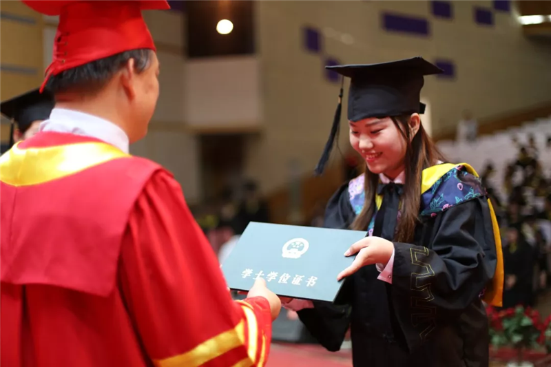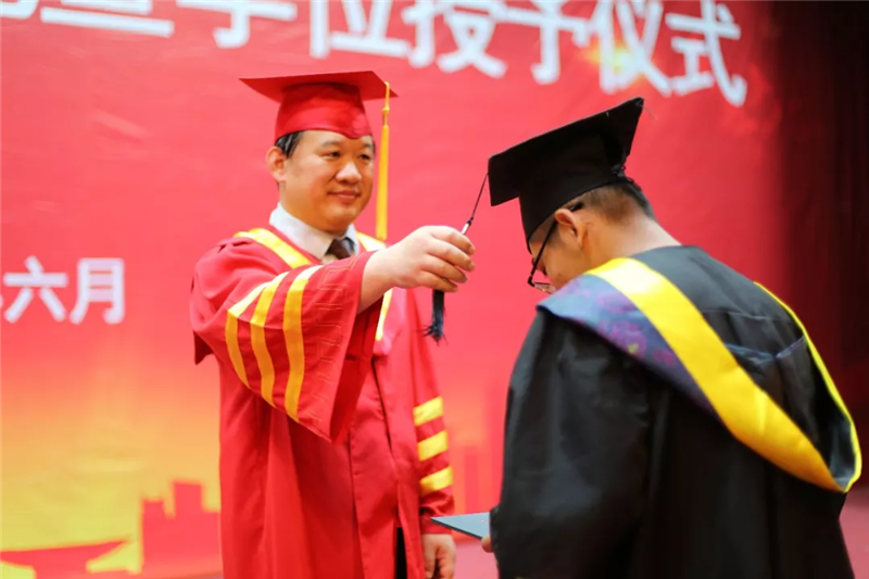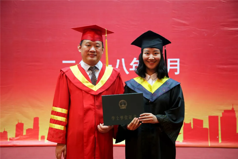 9时38分,毕业生学位授予仪式开始。副董事长夏传波宣读了《ladbrokes立博关于授予李仁义等同学学士学位的决定》,梁玉国执行董事长走上主席台,为每位毕业生颁发学位证书,拨穗正冠并合影留念。