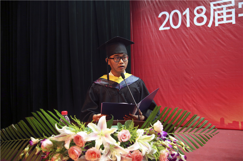 毕业生代表单宝琦同学发言,回顾了四年在校期间的收获与成长,代表所有毕业生向老师和母校表达了感激之情,同时表达了对同学们的祝福和对美好未来的期待。