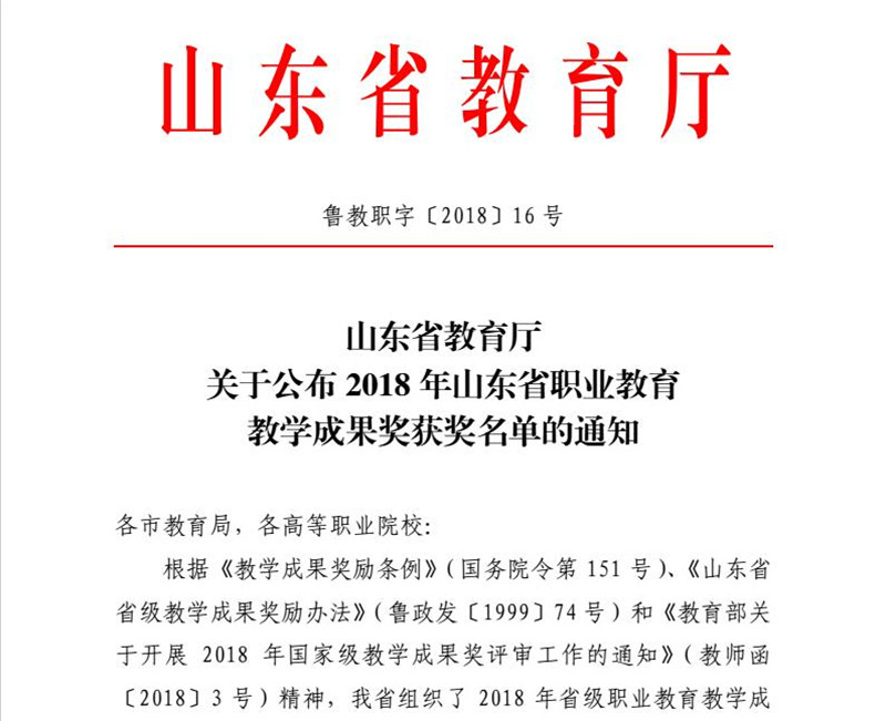 山东省职业公司产品成果奖是我省职业公司产品研究与改革的最高级别奖项,是对我省职业教育人才培养、教学建设和教学改革成果的检阅和展示。此次教学成果奖的取得,充分反映出公司职业教育在创新人才培养模式、深化产教融合等方面取得的成效。