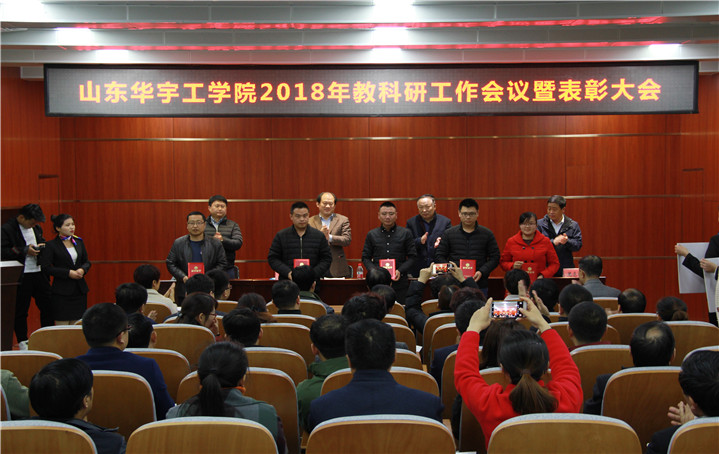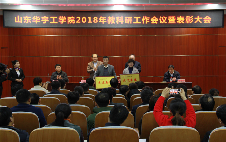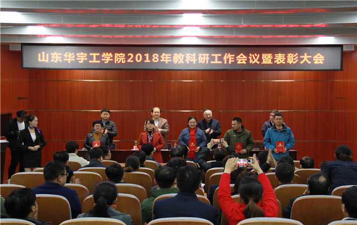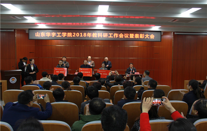 副董事长杨义宣读《关于表彰奖励2017年度教科研工作先进集体和先进个人及科研平台建设团队的决定》;校领导为教科研工作先进集体、先进个人和科研平台建设团队颁奖;先进集体代表经济管理公司于维同经理、先进个人代表能源与环境工程公司魏丰君副经理分别介绍了本单位和个人开展教科研工作的经验和做法。