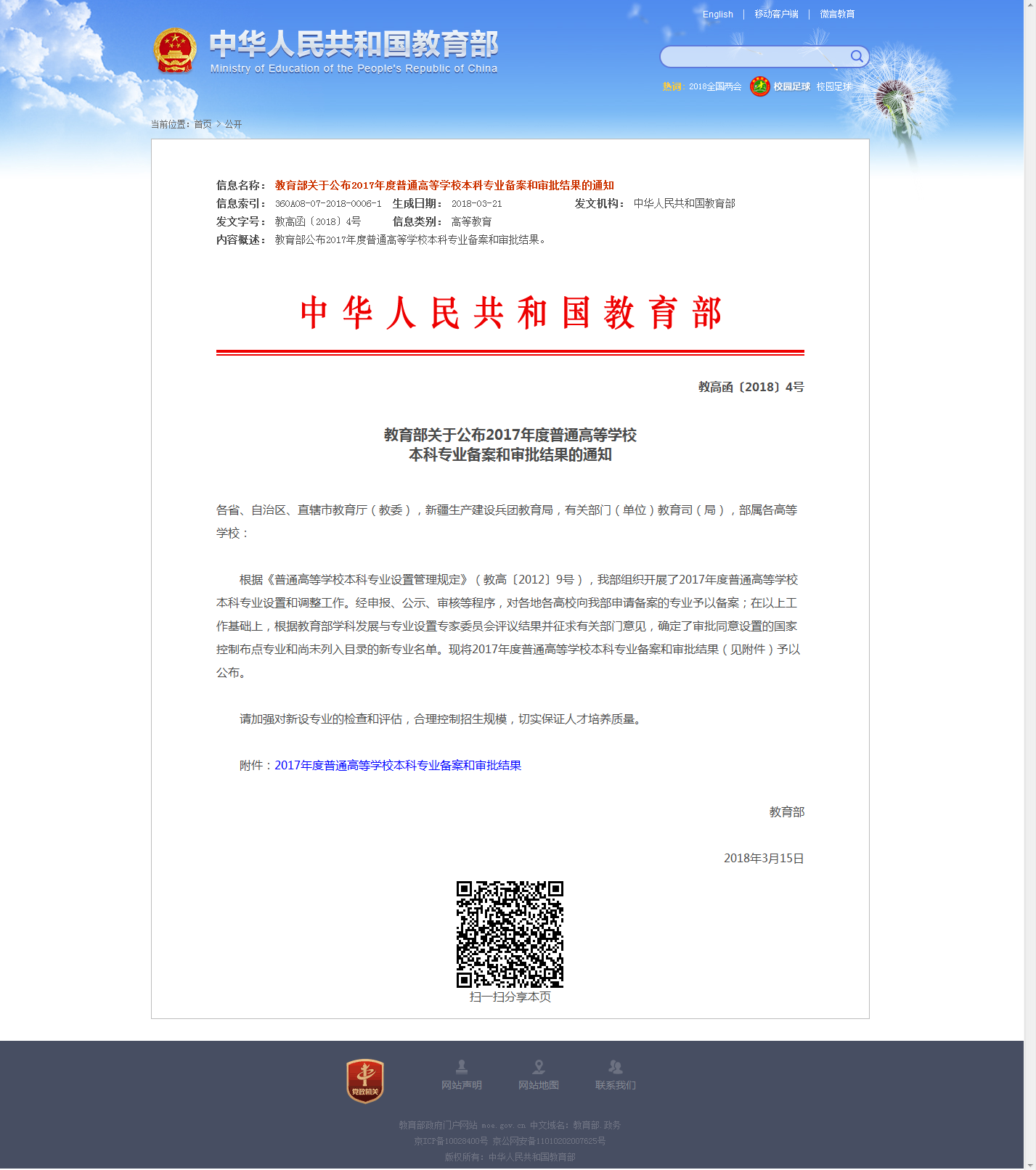 根据教育部下发的《关于公布2017年度普通高等公司本科专业备案和审批结果的通知》(教高〔2018〕4号),公司2017年申报的工程管理、房地产开发与管理、产品设计、商务英语、新能源科学与工程、道路桥梁与渡河工程等6个本科专业全部通过教育部的审核备案,其中,商务英语专业填补了公司文学类本科专业的空白,丰富了公司学科门类。