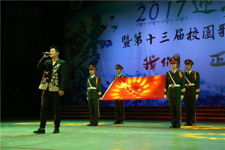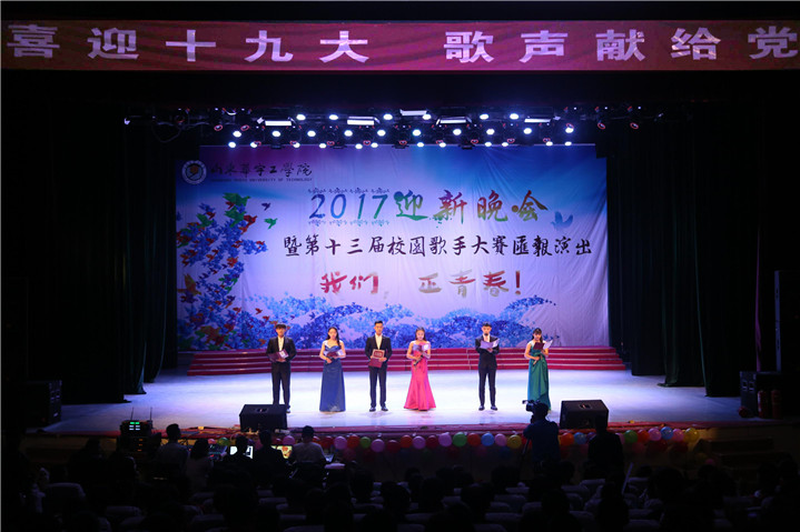 校园歌手大赛做为每年必有的品牌活动之一,已经历经了十二届,今年的校园歌手大赛十强在2017级300多名新生中经过层层选拔脱颖而出。晚会中由17级十强歌手带来的歌曲串烧《中国话》《红旗飘飘》《龙的传人》《我爱你中国》,也赢得了广大师生的喜爱,用他们的歌声,代表全体新生,向祖国献礼;同时16级校园歌手十强也为我们带来了精彩表演,默契的配合、精湛的唱功再次将现场气氛点燃。