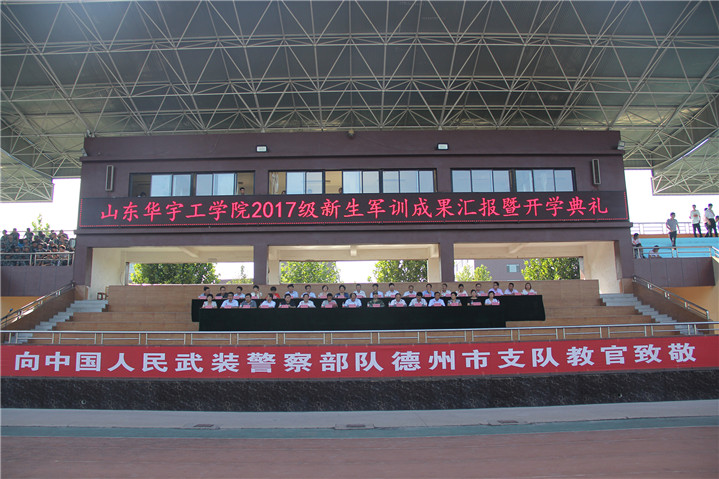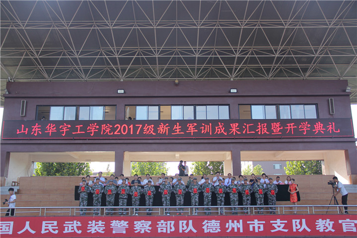 9月8日下午3时30分,公司2017级新生军训成果汇报暨开学典礼在公司田径运动场隆重举行。中国人民武装警察部队德州支队副参谋长王洪彪,山东省委高校工委党建工作联络员、山东省教育厅督导专员李长瑞,公司执行董事长梁玉国,公司副董事长张文圣,公司党委副书记、副董事长高挺进,公司副董事长杨义、杜光荣,董事长助理魏东坡以及各职能部门和二级公司的主要负责同志出席典礼并在主席台就座。参训武警部队全体教官,公司军训团全体成员,全体教职工以及全校员工参加了大会。副董事长夏传波主持典礼仪式。