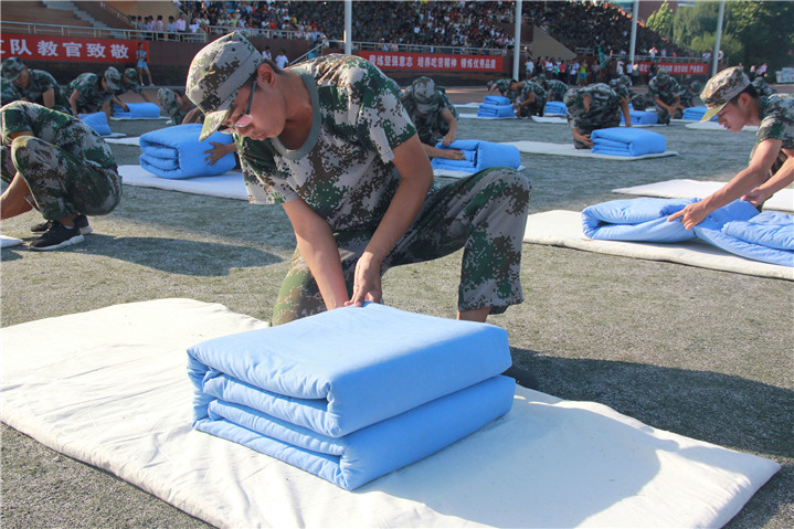 庄严的升国旗仪式结束后,2017级新生军训汇报表演正式拉开序幕。昂扬的军乐声中,三名国旗手迈着整齐划一的步伐进入大家的眼帘,充分展现了军训不畏艰辛、勇于向前的精神;就在大家还沉浸在对旗手的赞扬中时,各连分列式表演开始了。2017级新生9个训练营31个连队方阵迈着整齐的步伐走过主席台,他们队列整齐,步伐统一,英姿飒爽,意气风发,表现出了良好的精神风貌。分列式后,警棍盾牌操方队、队列变换方队全体队员不时变换各种造型,展示了老员工朝气蓬勃、乐观向上的时代风貌,他们用警棍盾牌拼成的“SDHY”形状、“华宇”和“2017”字样,昭示着华宇公司蓬勃发展、生生不息;战术动作方队队员个个生龙活虎、雄姿勃发、豪气冲天,展现出中华儿女的飒爽英姿;叠军被方队惊人的叠军被速度,熟练的技巧,整齐划一的“豆腐块”让现场的观众大饱眼福;同学们精彩的表演赢得了现场观众的阵阵掌声。