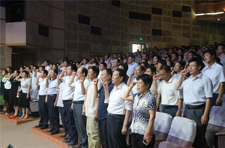 在大会上,公司全体教师面向国旗进行了宣誓,感受“薪火相传,师德传承”的神圣责任。