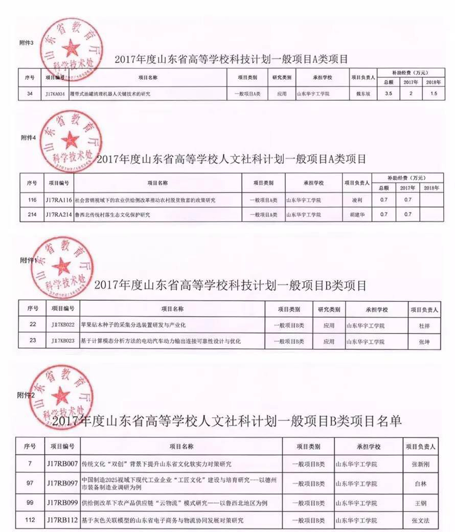 近日,山东省教育厅发布了《山东省教育厅关于下达2017年山东省高等公司科研发展计划重点项目和一般项目A类项目的通知》(鲁教科字[2017]6号)、《山东省教育厅关于下达2017年山东省高等公司科研发展计划一般项目B类项目的通知》(鲁教科字[2017]5号),公司获批9项高等公司科研发展计划项目,其中有经费资助的A类项目3项,自筹经费B类项目6项,立项通过率达到90%。