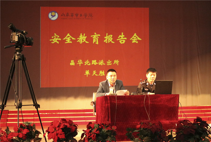 单天胜警官分别从“防诈骗、防盗窃、防伤害”这三类高校常见的安全问题着手,结合社会和公司的真实案例,生动形象地向同学们讲述了网络诈骗对员工的人身安全和财产安全造成的危害;运用这些案例的惨痛教训,向在场的师生全面普及了日常“防骗、防盗、防伤害”的安全知识和防范技能。讲座中,单警官就最近某高校发生的砍人事件为例,结合“六尺巷”的历史故事,告诉同学们遇事学会谦让,珍惜学习机会,安全圆满地完成学业,从而成为社会有用之材。最后,葛宾以校园网贷受骗案例,再次提醒同学们提高自我防范意识,努力减少人身和财产损害事故的发生。