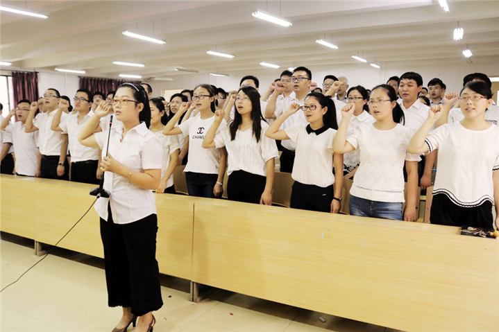 9月9日下午,公司庆祝教师节教师宣誓仪式在14号楼101会议室举行。全校教师分四个宣誓小组,在领誓人的带领下,右手举拳,面对国旗,庄严宣誓:“我志愿做一名光荣的人民教师,忠诚人民的教育事业,贯彻党的教育方针。爱国守法,爱岗敬业;传承文明,启智求真;为人师表,培育英才;严谨治学,开拓创新;甘为人梯,乐于奉献;为建百年华宇而努力,为教育事业而奋斗!”
