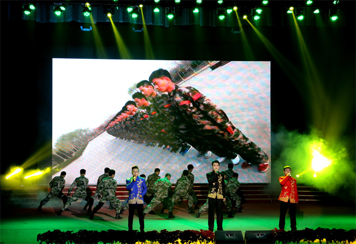 联欢会在欢乐的歌伴舞《喜庆的日子》中拉开帷幕,一曲欢快的《小水果》开启了欢庆元旦的旅程,同学们用优美的舞蹈、欢快的歌声向华宇全体师生送去了新年的祝福!有趣的相声《训徒》,搞笑的对白,跌宕的情节,让观众捧腹大笑;一首首欢庆新年的歌曲串烧烘托出新年的喜庆氛围;员工深情演唱的歌曲《好人好梦》,让全体师生感受到了员工对公司的深情、感恩与祝福;配乐朗诵《华宇最美身影》,通过对师生工作身影的抓拍,再配以同学们的深情演绎,真情诠释,充分体现了爱在校园、爱在华宇的美好和感恩老师、感恩华宇的深情;《我和你》回忆了公司建校以来的成长历程及取得的成绩,表达了华宇学子与母校共成长的深情与感悟;老师们的歌曲串烧《当你老了》、《好运来》、《牧人之歌》、《锁麟囊》展现了华宇教师的别样风采;催人泪下的情景舞蹈《时间都去哪儿了》、《中华好儿孙》等经典歌曲、师生同台表演的拉丁舞、E舞飞扬组合表演的杂技街舞、精彩的鬼步舞表演……这美妙的歌声,张扬的舞步,绝美的舞姿将联欢会一次次推向高潮。每个精彩的表演,每个努力的付出,都体现了华宇学子对华宇校园的热爱与感恩。他们用深情、灵动和青春诠释了这次联欢会“收获感恩,温暖前行”的主题。