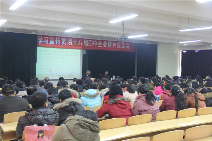 建筑工程系刘占凯老师从十八届四中全会的内容及新亮点、为什么如此重视法制建设以及十八大精神指导高校改革发展三个方面对十八届四中全会部分内容进行了解读。