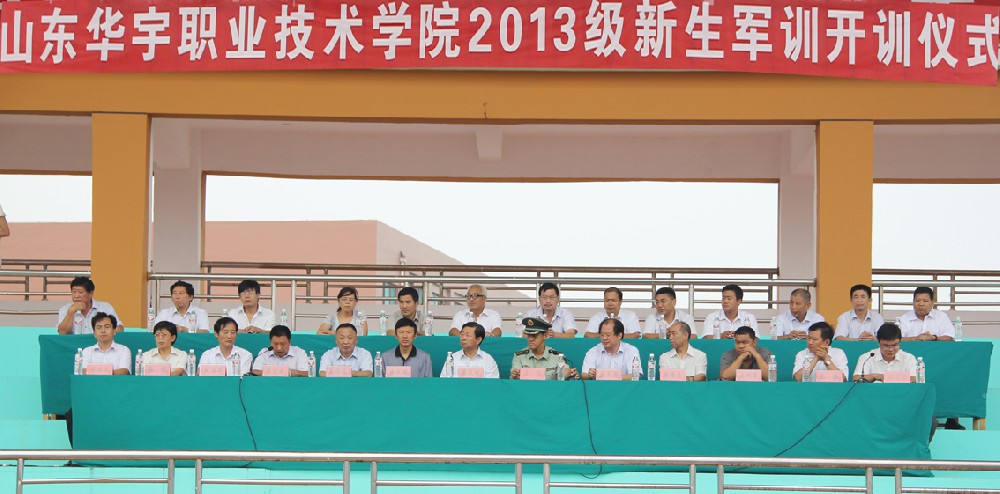 2013年8月28日上午,美丽的太阳城秋高气爽,幽静的华宇校园绿树成荫、鸟语花香。公司2013级新生军训开训仪式在公司体育场隆重举行。中国人民武装警察部队德州支队教导队大队长王雷,山东省教育厅督导专员、山东省高校工委党建工作联络员李长瑞同志,公司经理董泉增教授、常务副经理梁玉国副教授、副经理夏传波副教授、朱志平教授、杨俊亮教授、经理助理马鹏举、财务总监赵海军,以及公司各处(室)、系(中心)负责人出席开训仪式并在主席台就座,中国人民武装警察部队德州支队参训教官、公司教师代表以及全体2013级新生参加了开训仪式。军训开训仪式由经理助理张宜经主持。