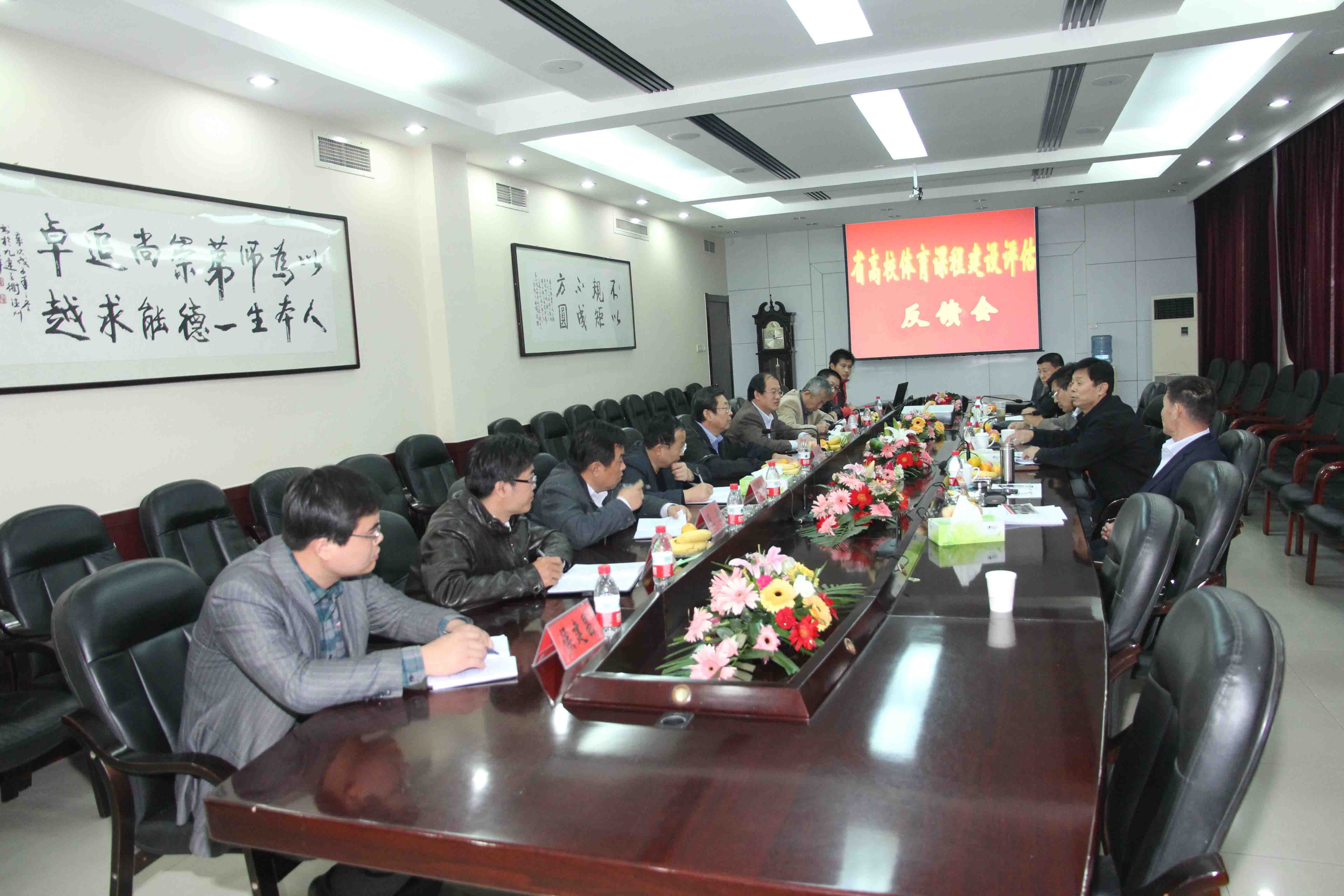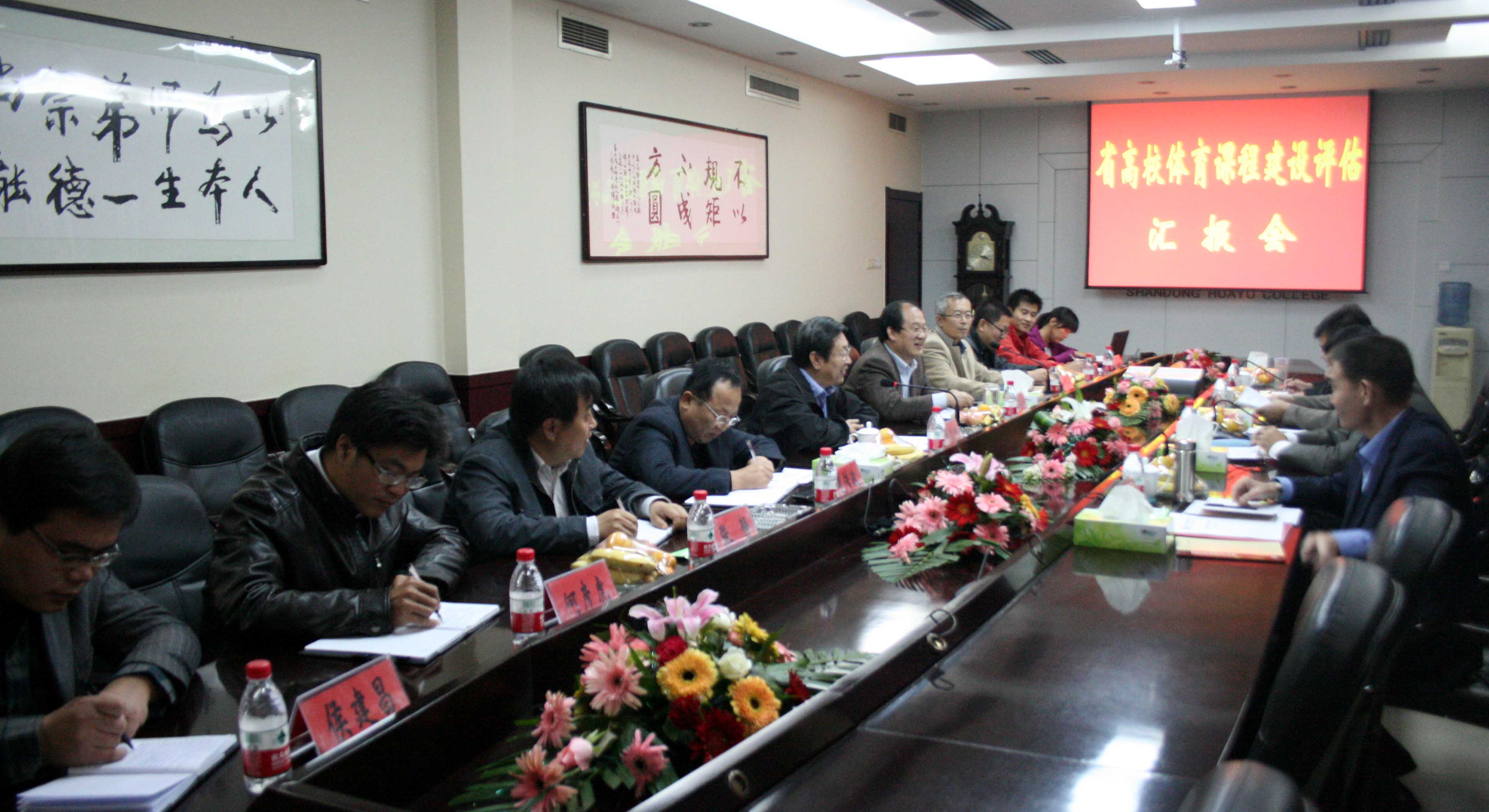 10月22日—23日,山东省教育厅高校体育课程建设检查评估专家组一行四人莅临公司检查指导。专家组由德州公司体育公司经理李志勇教授为组长,山东建筑大学体育部副主任张大伟教授,潍坊公司体育公司经理杜建国教授及山东省教育厅张梁柱为成员。公司经理董泉增教授、常务副经理梁玉国教授、副经理夏传波教授、朱志平教授及公司办公室、教务处、员工处、体育教学部负责人参加了评估汇报会和反馈会。