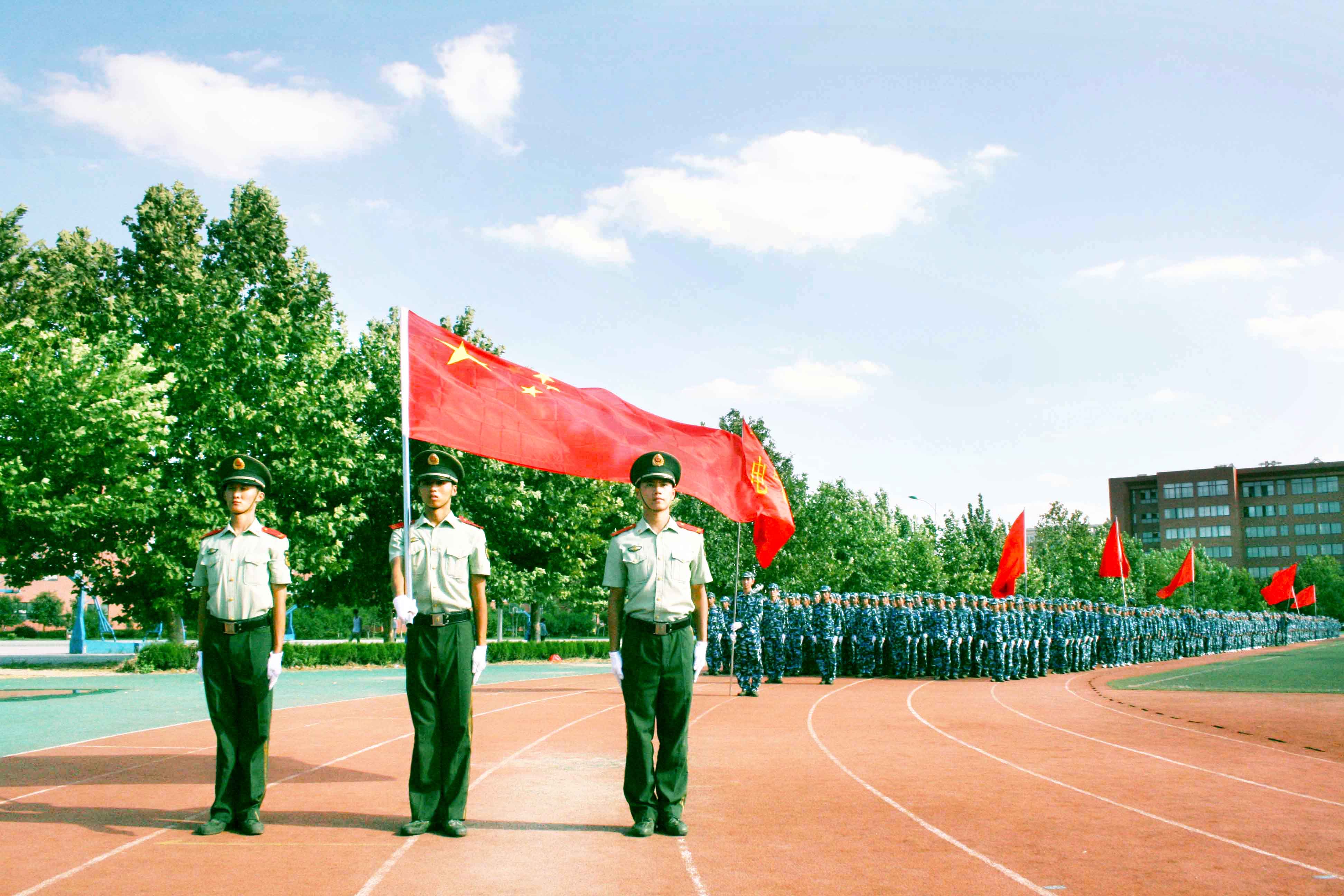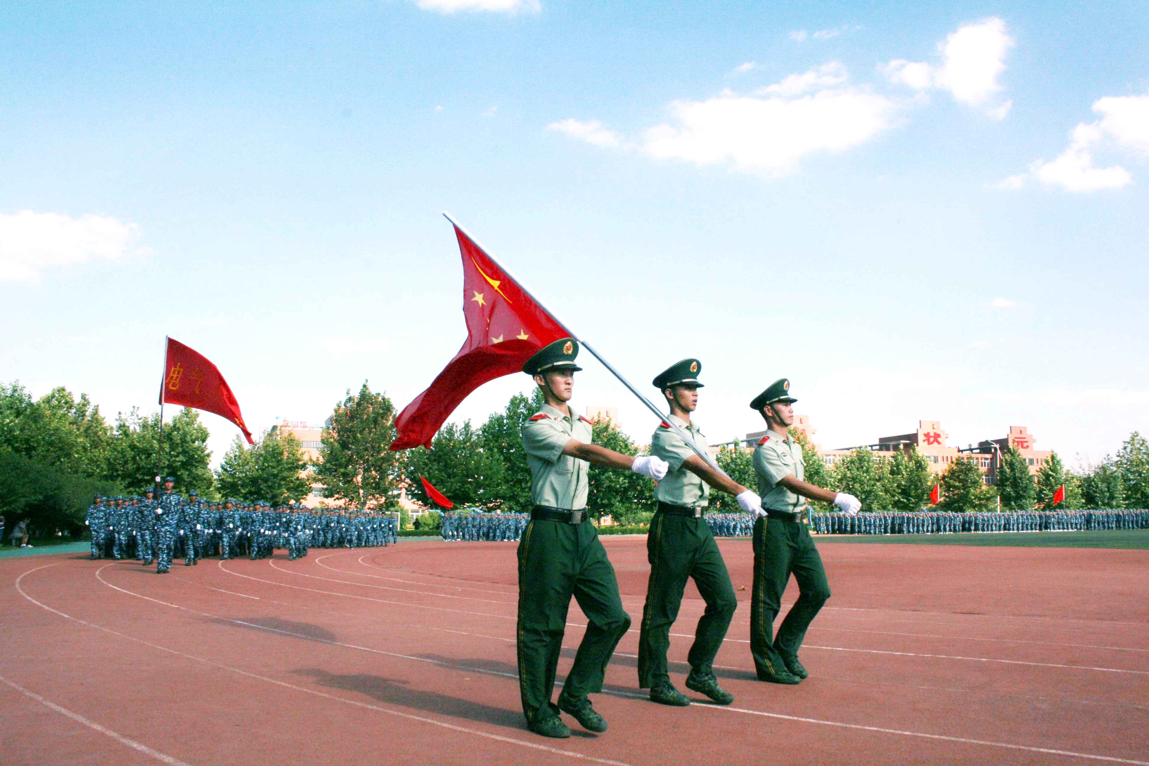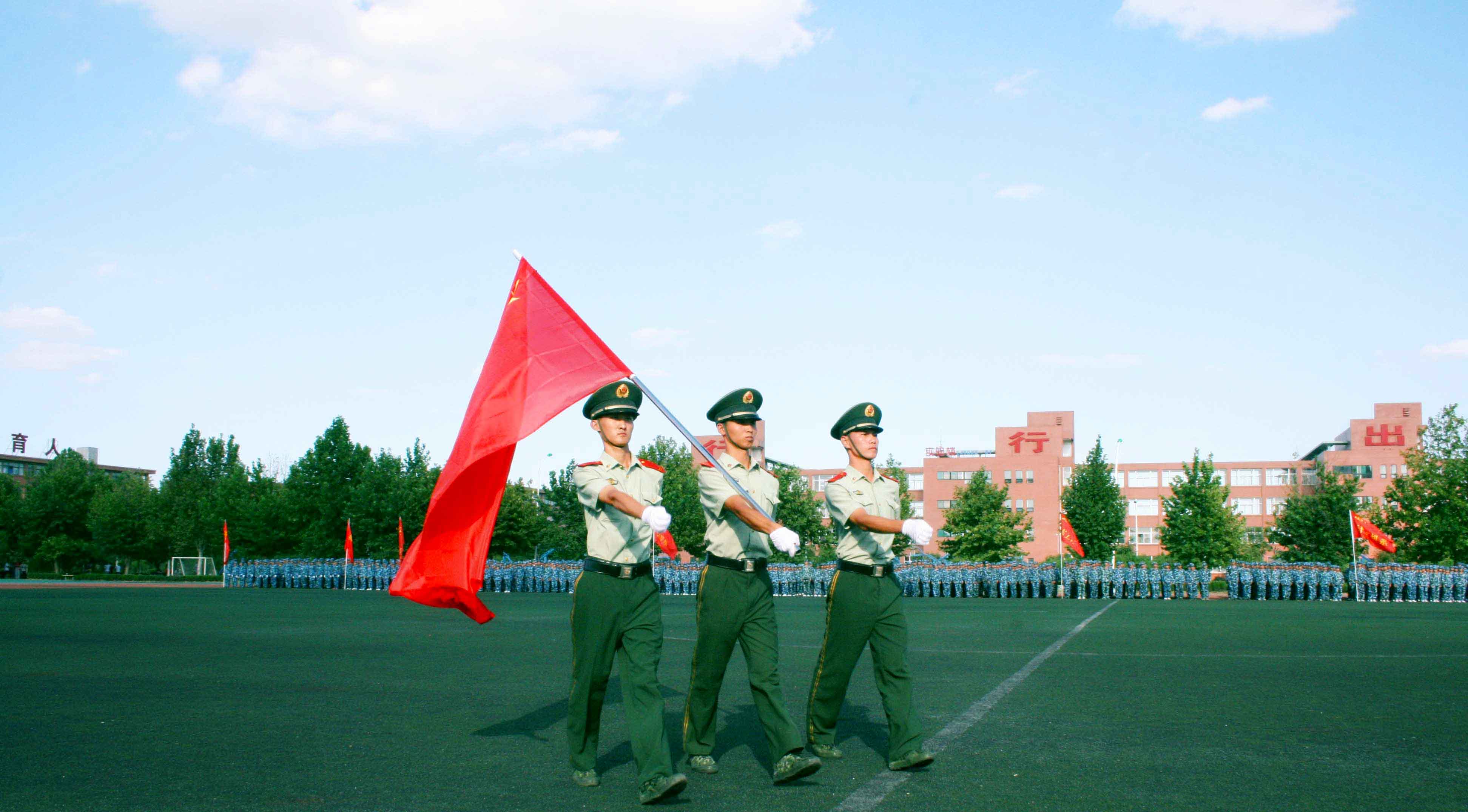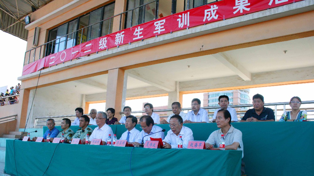 9月3日下午3时30分,公司2012级新生军训成果汇报暨开学典礼在公司体育场隆重举行。中国人民警察部队德州支队教导队大队长王雷与公司党委书记靳大、经理董泉增、常务副经理梁玉国、副经理朱志平、财务总监赵海军以及各系部负责同志出席典礼并在主席台就座。参训武警部队全体教官、院军训团全体成员、2010级、2011级员工代表参加了大会。副经理夏传波主持典礼仪式。