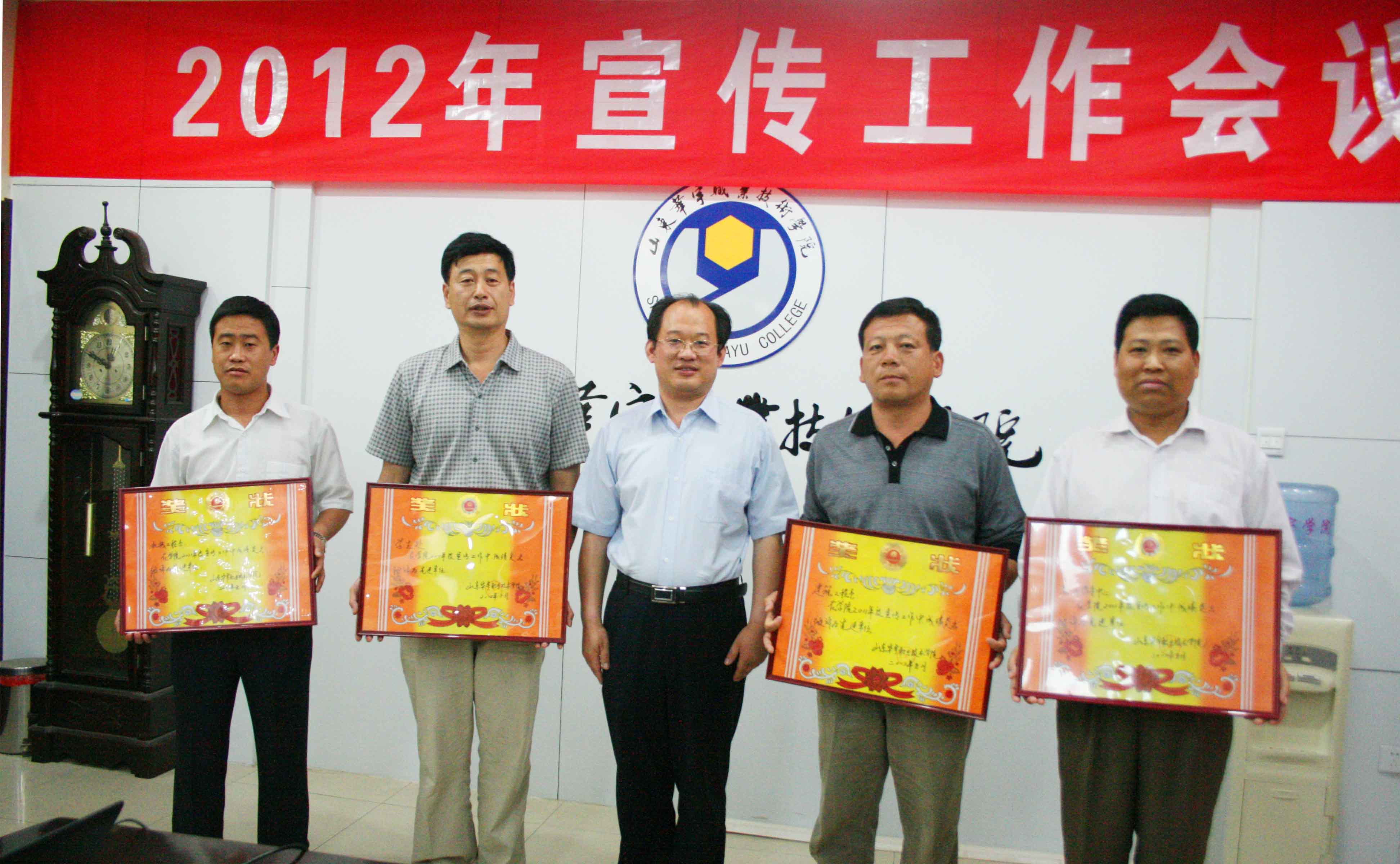 会议对在2011年公司宣传和品牌建设工作中做出突出成绩的先进单位和先进个人进行了表彰。授予建筑工程系、机械工程系、员工处、就业指导中心等4个单位为2011年新闻宣传工作先进单位荣誉称号,授予范世伟、李继财、郭振、赵立艳、方永杰、陈晨、时永远等7名师生2011年新闻宣传工作先进个人荣誉称号。常务副经理、党委宣传委员梁玉国教授为获奖单位颁奖,获奖单位负责人分别进行了典型发言和工作交流。