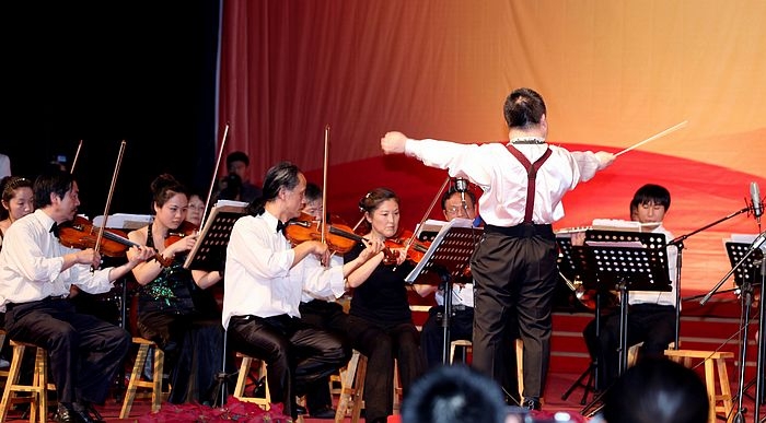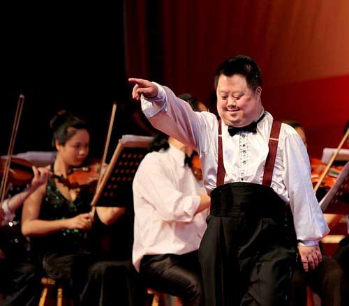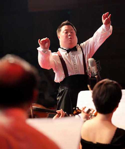 著名残疾人天才指挥家舟舟在专心指挥