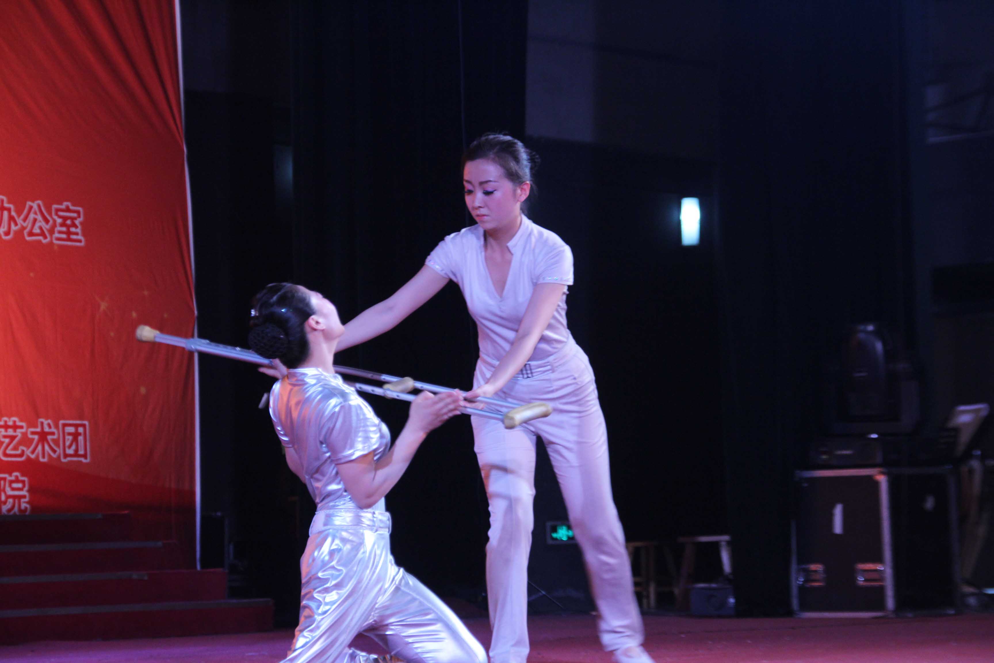 艺术团演员王梅在双人舞《命运》中激情表演,该节目曾在北京2008残奥会获奖
