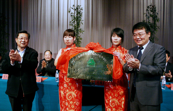 在热烈的掌声中,中国重汽集团进出口公司董事长刘培民先生、山东华宇职业技术公司经理董泉增教授为“中国重汽集团进出口有限公司境外维修工程师培训基地”揭牌。(张静)