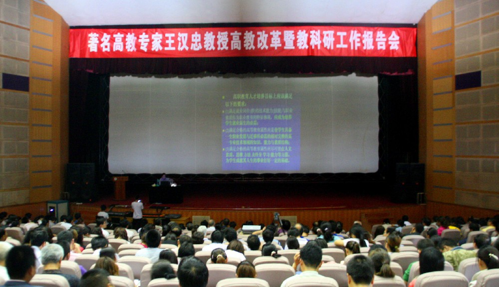 王汉忠教授作为全国著名高教专家,主持过多项重大科研课题研究工作,发表学术论文近百篇,尤其在高等职业教育建设、改革和教科研方面有极高的造诣。上午的报告会,王教授重点分析了高职教育发展的现状与问题,列举了国家示范性高等职业院校建设取得的丰硕成果,讲述了高职院校内涵建设的主要内容以及如何促进公司办学水平提高等方面的内容。下午王教授就高职院校教研管理的重要性、教学工作的基本思路、教研教改的重点、教研课题的申报、教研工作重点、教研管理的追求目标及国家级教学成果案例介绍等方面进行了精辟论述。