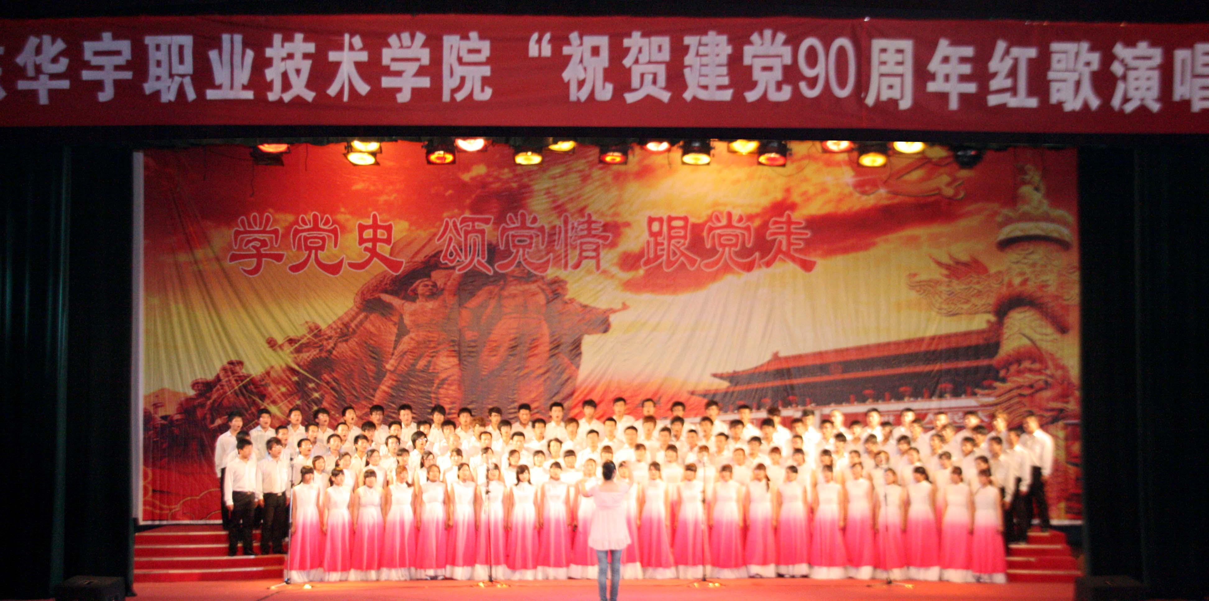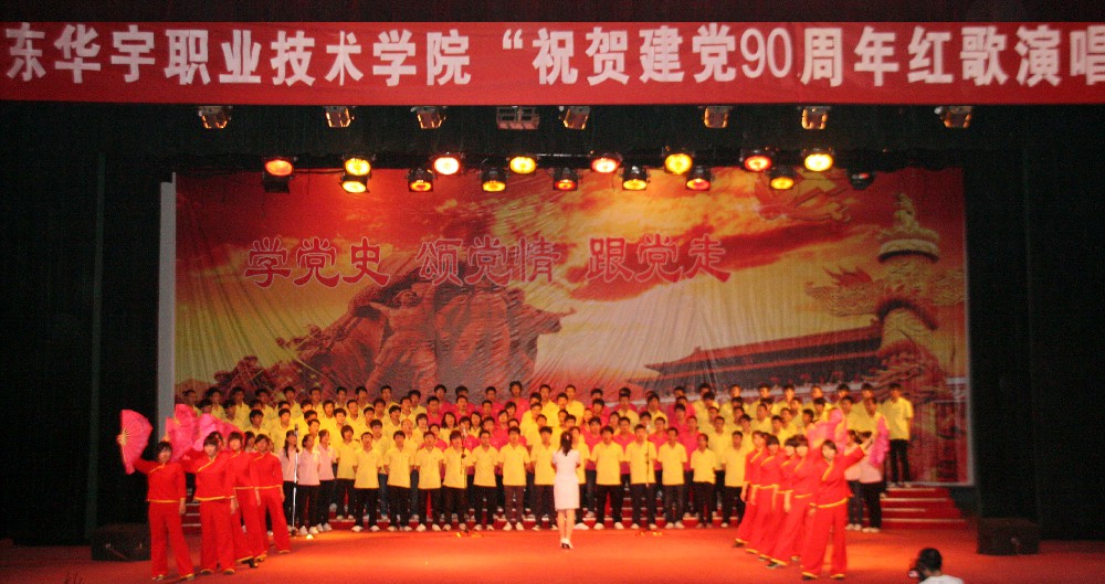 5月30日,公司庆祝建党九十周年“学党史、颂党情、跟党走”大型红歌演唱会在国际文化中心隆重举行。院领导靳大、董泉增、梁玉国、夏传波、朱志平、马鹏举、叶厚顺、张宜经及全体师生党员、员工代表、演职人员1400余人在主会场观看了演出,其他师生在教室收听收看了华宇电视台的现场直播。