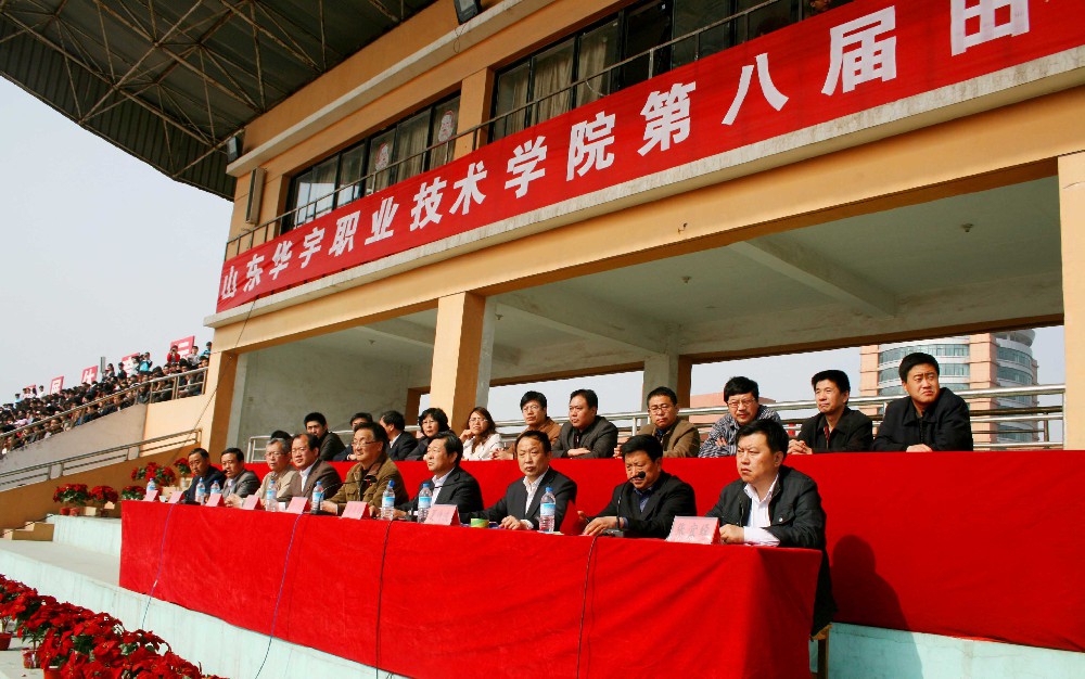 院领导靳大宣布“山东华宇职业技术公司第八届田径运动会”开幕。