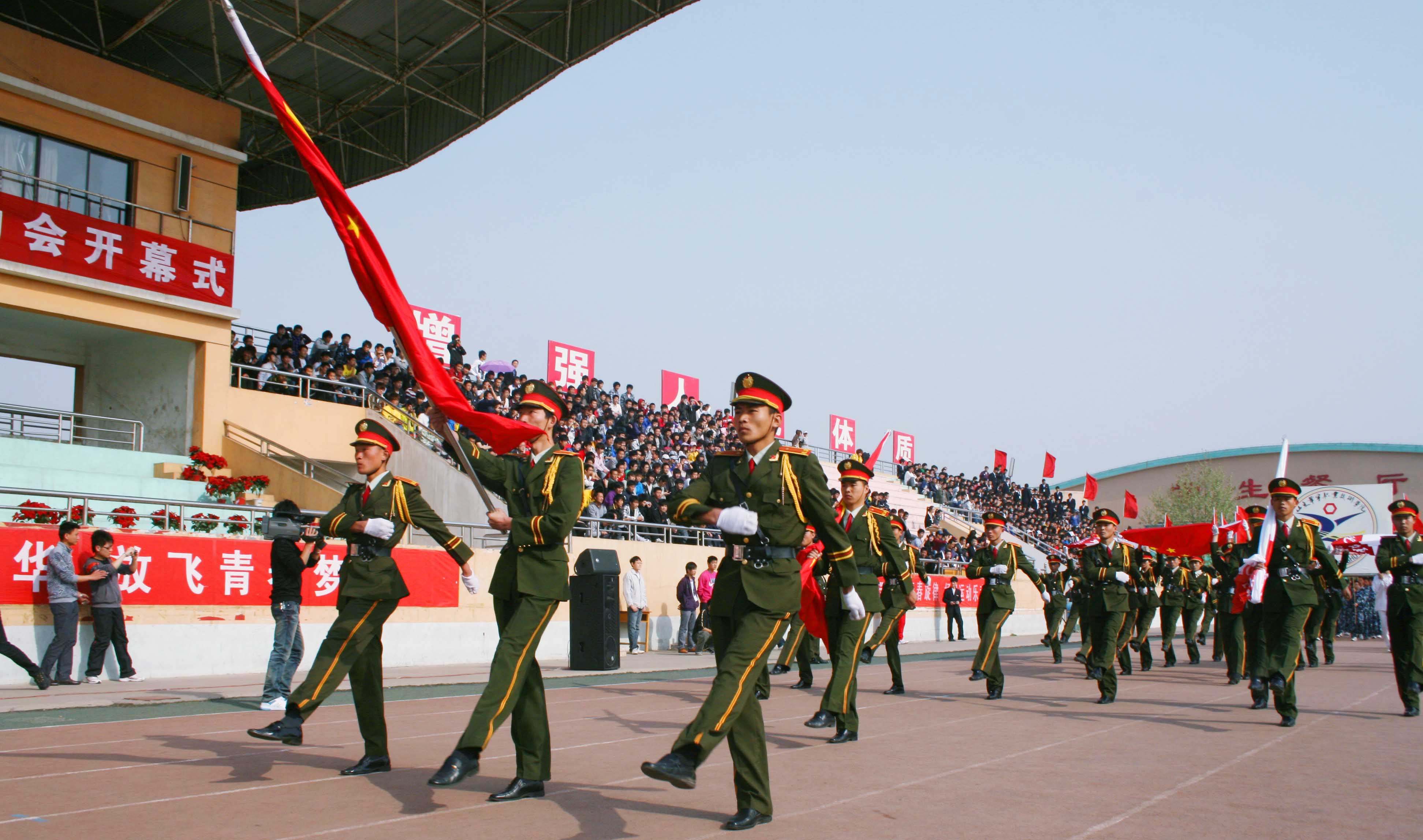 开幕式上,国旗队、校旗队以及由各系部运动员代表组成的几十支方队,身着整齐的服装,迈着矫健的步伐,精神昂扬的从主席台前走过,接受领导的检阅,大型锣鼓表演《威风锣鼓华宇雄风》和大型体操表演《和谐华宇》更是以其整齐划一的姿势、恢弘的气势彰显了华宇的形象,感动了在场的每一位观众。