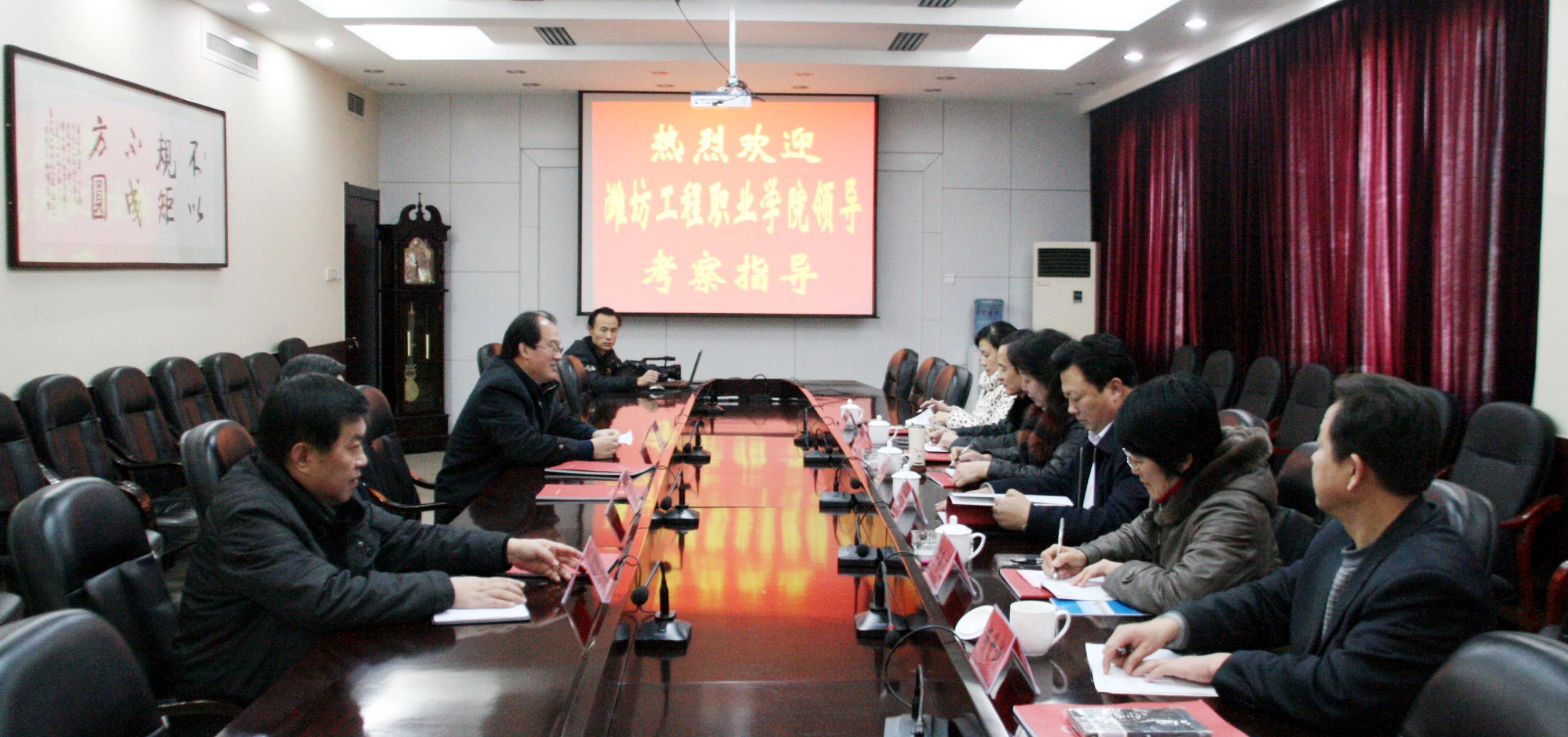 2011年1月6日,潍坊工程职业公司经理肖明胜一行六人来公司参观考察。公司经理董泉增、常务副经理梁玉国热情接待了肖明胜经理一行,并陪同客人实地参观了公司的实验实训条件建设和校园基础设施。