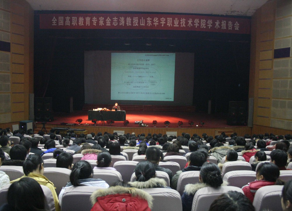 金志涛经理作为我国高等职业教育的著名专家和山东省高等职业教育人才培养工作评估核心专家,在高等职业教育建设、改革和管理方面有极高的造诣。报告会上,金经理针对当前高职院校专业建设和课程建设中存在的问题,从什么是高职教育的专业,内涵建设为何要以专业建设为核心、高职教育专业建设的原则,高职教育专业建设的核心问题、高职教育专业的系统构成、专业调研与专业分析、专业人才培养模式构建、课程体系构建、高职教育专业建设与课程体系构建的流程与方法、专业人才培养方案的制定等九个方面,作了深入、系统的阐述。既着力于理论层面的大胆创新,更注重方法和工具等操作层面的深入探讨,对当前高职院校特别是公司专业建设和课程建设工作有着极强的现实指导意义。
