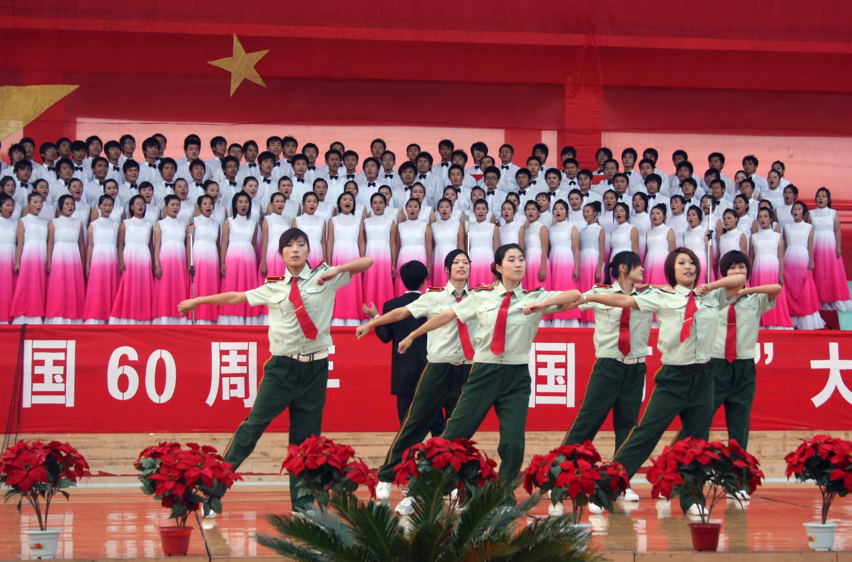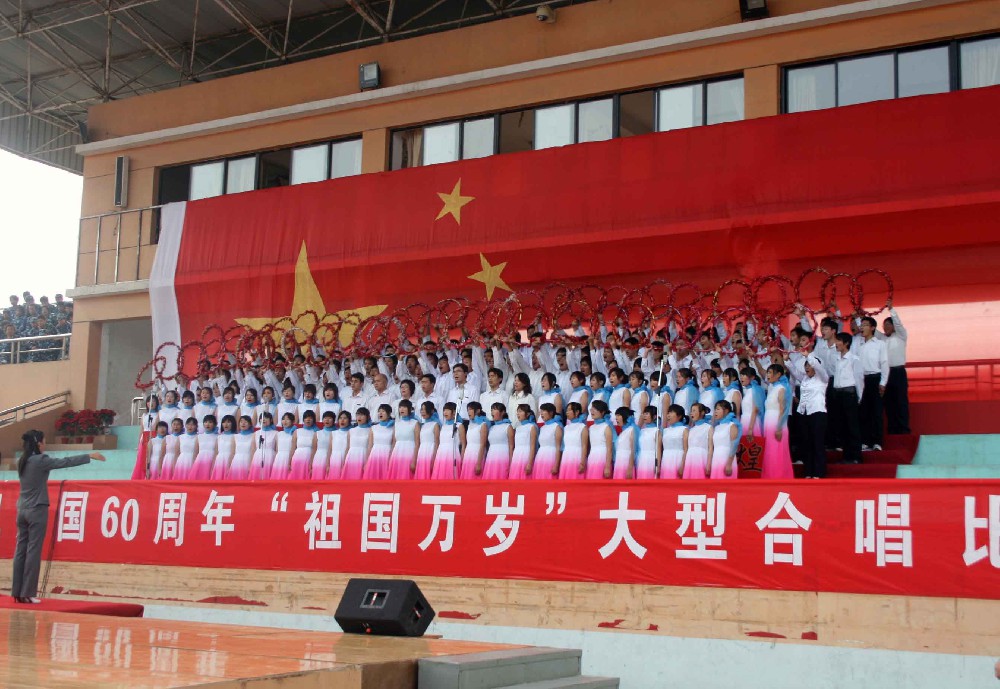 9月28日下午,公司庆祝新中国成立60周年“祖国万岁”大型合唱比赛在公司体育场隆重举行。公司各系(院)共七支代表队参加了比赛。公司党委书记靳大、常务副经理梁玉国、副经理夏传波、经理助理叶厚顺、张宜经、全体教职工和2009级全体新生一起观看了比赛。