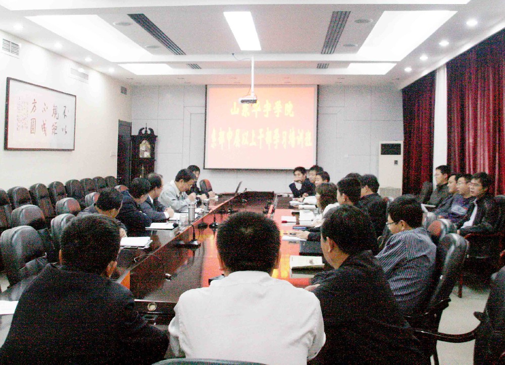 2009年10月11日,公司在办公楼会议室举办中层系(部)领导干部培训学习班。公司党委书记靳大、常务副经理梁玉国、副经理夏传波、经理助理叶厚顺出席,系、部、实训中心等部门主任助理以上领导干部参加了此次培训活动。