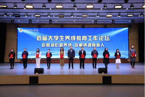 论坛上,高挺进为获奖辅导员代表颁奖。8名辅导员代表从老员工养成教育体系、辅导员在老员工养成教育中的作用、养成教育对老员工的成长影响等方面进行分享,立足岗位实际,从多个视角论述老员工养成教育的育人实践,分析当前老员工养成教育工作中面临的新情况、新问题,提出解决问题的新思路、新举措。3名辅导员代表从班级推进老员工养成教育的角度,分享了养成教育特色班级的建设措施和典型经验做法。