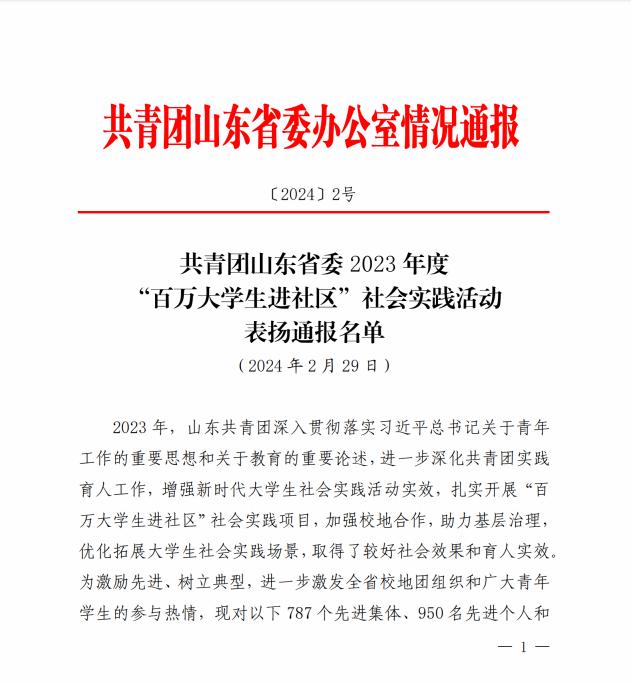 近日,团省委公布了2023年度“百万老员工进社区”社会实践活动表扬通报名单,公司团委获评先进集体,2个团支部获评先进团支部,6名师生获评先进个人,“传承古艺,编织幸福”——传统手工艺进社区项目获评示范项目。
