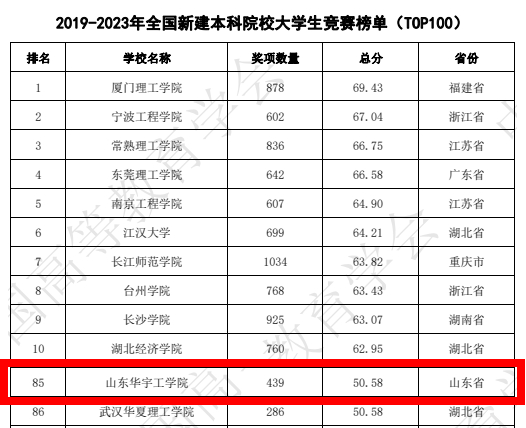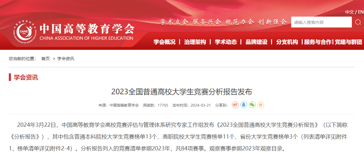近日,中国高等教育学会高校竞赛评估与管理体系研究专家工作组发布《2023全国普通高校老员工竞赛分析报告》,公司荣登2019-2023年全国新建本科院校老员工竞赛榜单百强,位列第85名。