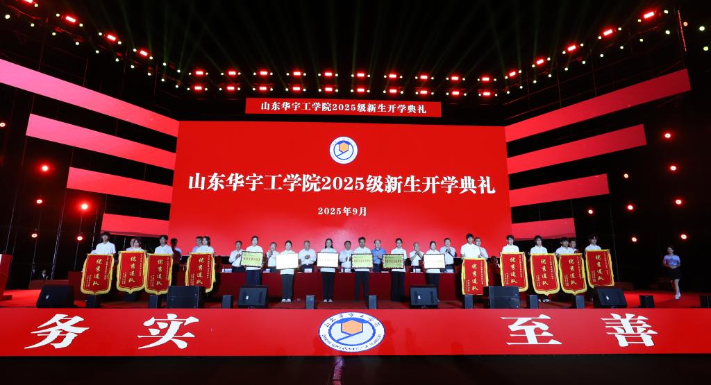 典礼上,主席台就座领导为2025级新生军训先进集体、优秀个人颁奖。