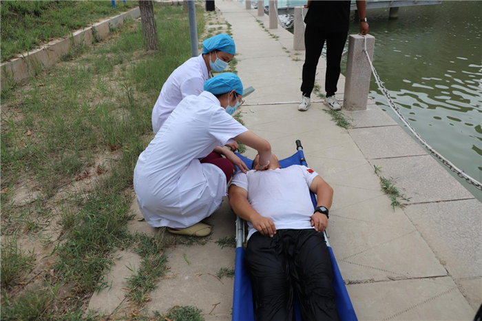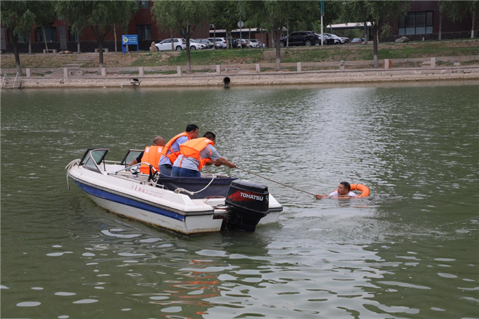 本次演练共设有抢险组、后勤保障组、安全保卫组、事故救护组四个抢险工作组。演练以连日暴雨,公司泽虬湖水位急剧上涨,发生倒灌,可能引发员工、相关工作人员生命安全及坍塌等安全隐患为背景,以泽虬湖北岸为演练地点,以筑坝抢险、落水人员救护、医疗救援三个环节为演练内容。