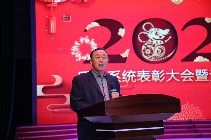 副董事长杜光荣在联欢会上致辞。他充分肯定了后勤系统过去一年的成绩,并向后勤员工致以诚挚的祝愿和美好的新年祝福。